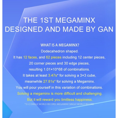 GAN Megaminx M je magnetni megaminx težak samo oko 113 g, otprilike 15% lakši od većine sličnih modela.