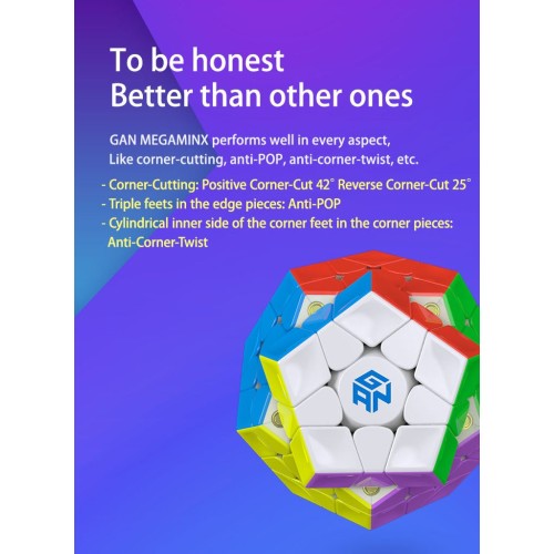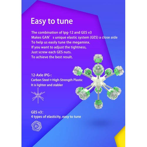 Unutra se nalazi 120 magneta i karakteristična GAN saćasta struktura na delovima, zahvaljujući čemu se megaminx okreće brzo, glatko i ostaje pod kontrolom čak i pri velikoj brzini.
