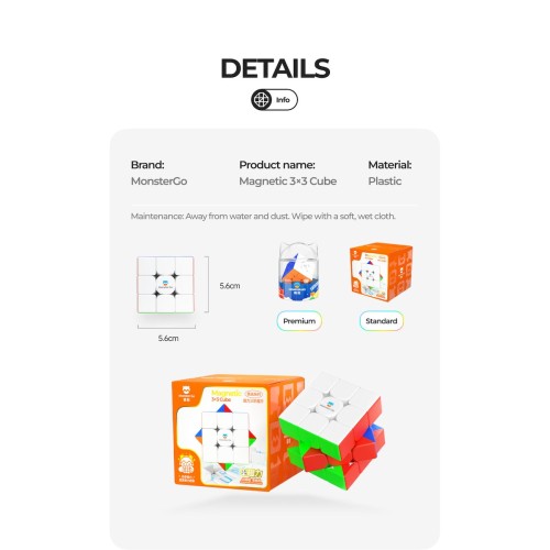 MG3 Magnetic 3×3 je magnetna kocka iz linije Monster Go, subbrenda GANCUBE-a. Kocka ima dimenzije 56×56×56 mm, težinu oko 81 g i napravljena je od bezbedne ABS plastike.